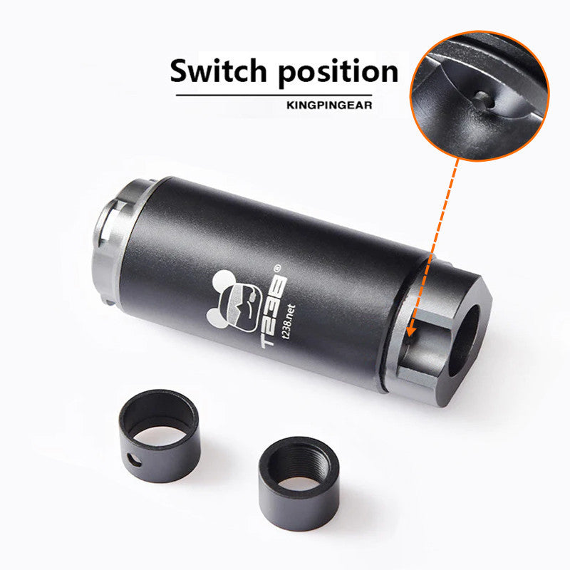 Measuring 92mm in length with a 38mm outer diameter and 14mm inner diameter, this lightweight 120g luminous water bomb supports a 19mm mount with included adapters (14 CCW and 19mm to 16mm), ensuring broad compatibility. It accommodates spherical and cylindrical projectiles between 6-14mm, including tracer BB darts, Nerf dart glow enhancements, and gel balls.